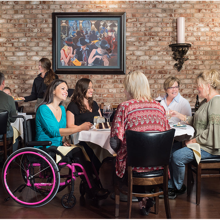 Enhanced visibility Motion Composites' Vision Package uses bright orange accents to enhance visibility and safety. This vibrant color is easily seen in various environments, even in low light, and offers excellent contrast against darker backgrounds. This makes it simpler for users with visual or cognitive impairments to quickly distinguish essential wheelchair components, like the footplates, wheel locks, and armrests. The result? A safer, more user-friendly experience that gives individuals greater confidence and independence.