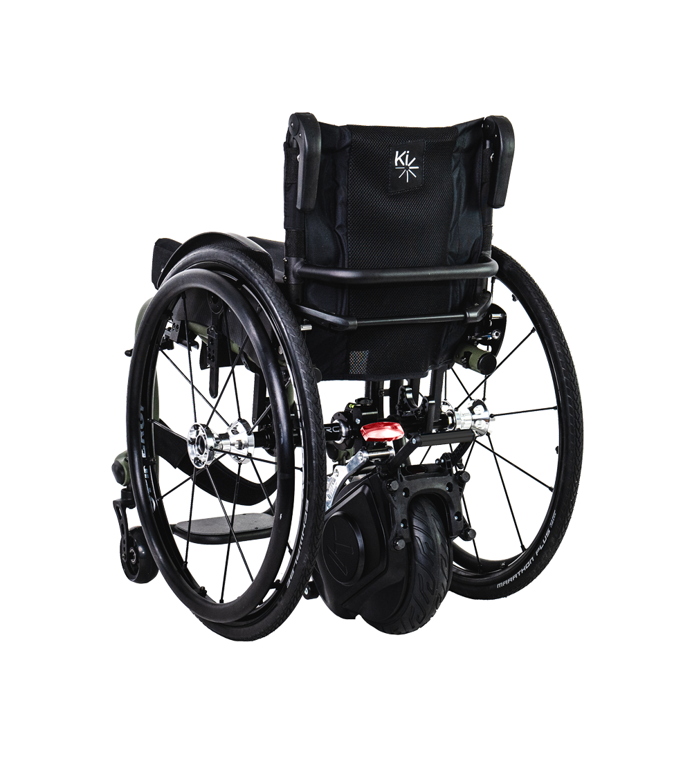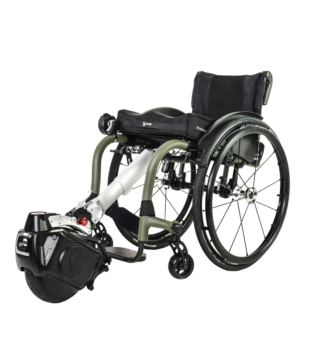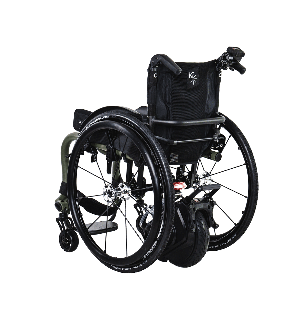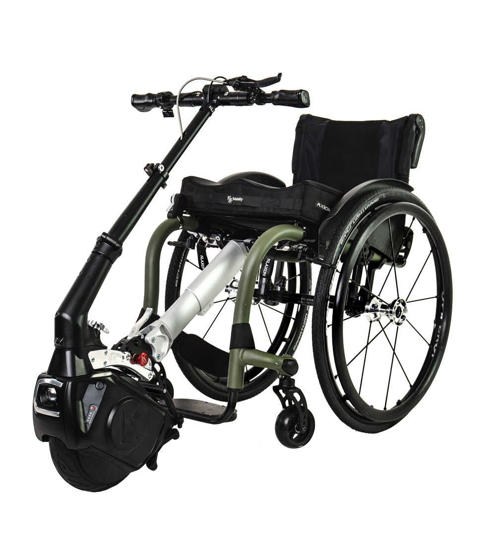 A game-changer, the Klaxon Twist, is an innovative power-assist device for manual wheelchairs. Due to its unique, compact design, the Twist can be mounted out the front of the wheelchair, or underneath, to give drive from the rear. This new member of the Klaxon family has been developed by a team of equipment users and industrial designers, encasing features such as lighting and powered-braking. The Twist is agile and reliable on different types of terrain, uphill and downhill, on gravel, on rough and uneven ground. Fast and manoeuvrable, it is made of high quality materials and with innovative technologies. The special foldable handlebar offers even more riding comfort and more speed. It connects to the Twist with a plug-in system. With Twist you can check your settings and usage statistics directly on the display of your Smartphone. You can easily program speed and braking parameters or view the battery consumption.