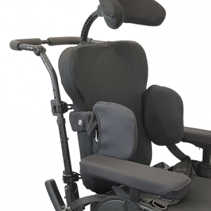 The Axial Biangular lateral trunk support has been designed to provide superior trunk positioning and improved pressure distribution for individuals who present with scoliosis and/or other complex trunk asymmetries observed on the frontal plane. Its system comprises a pivot-hinge within the lateral pads which allows for intricate positioning for both concave and convex deviations as it adjusts to different body presentations. Together with the Axial technology and superior foam padding finish, the Biangular lateral support ensures optimum fitting to address asymmetric body shapes, and provides excellent pressure distribution through a wider surface area to optimize comfort