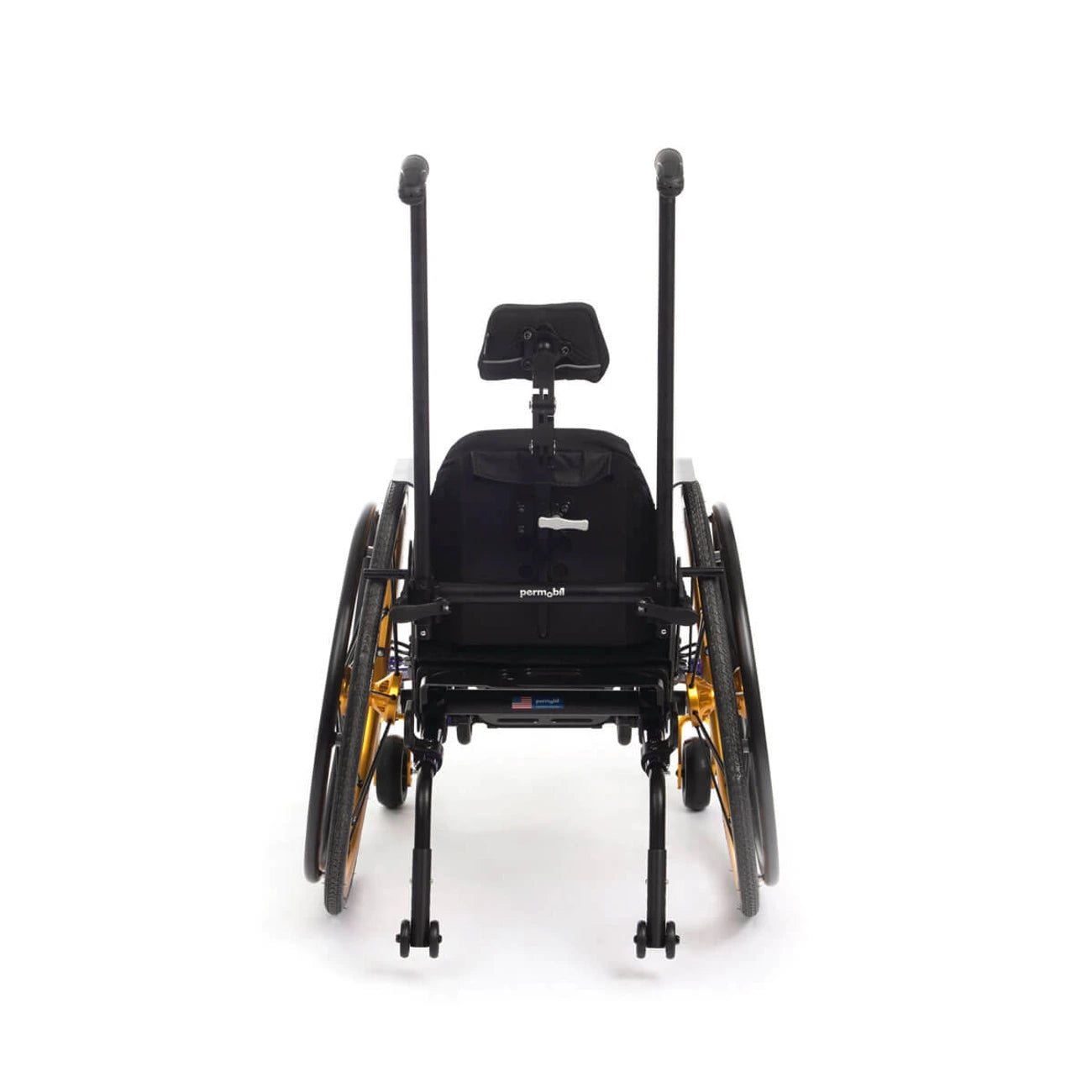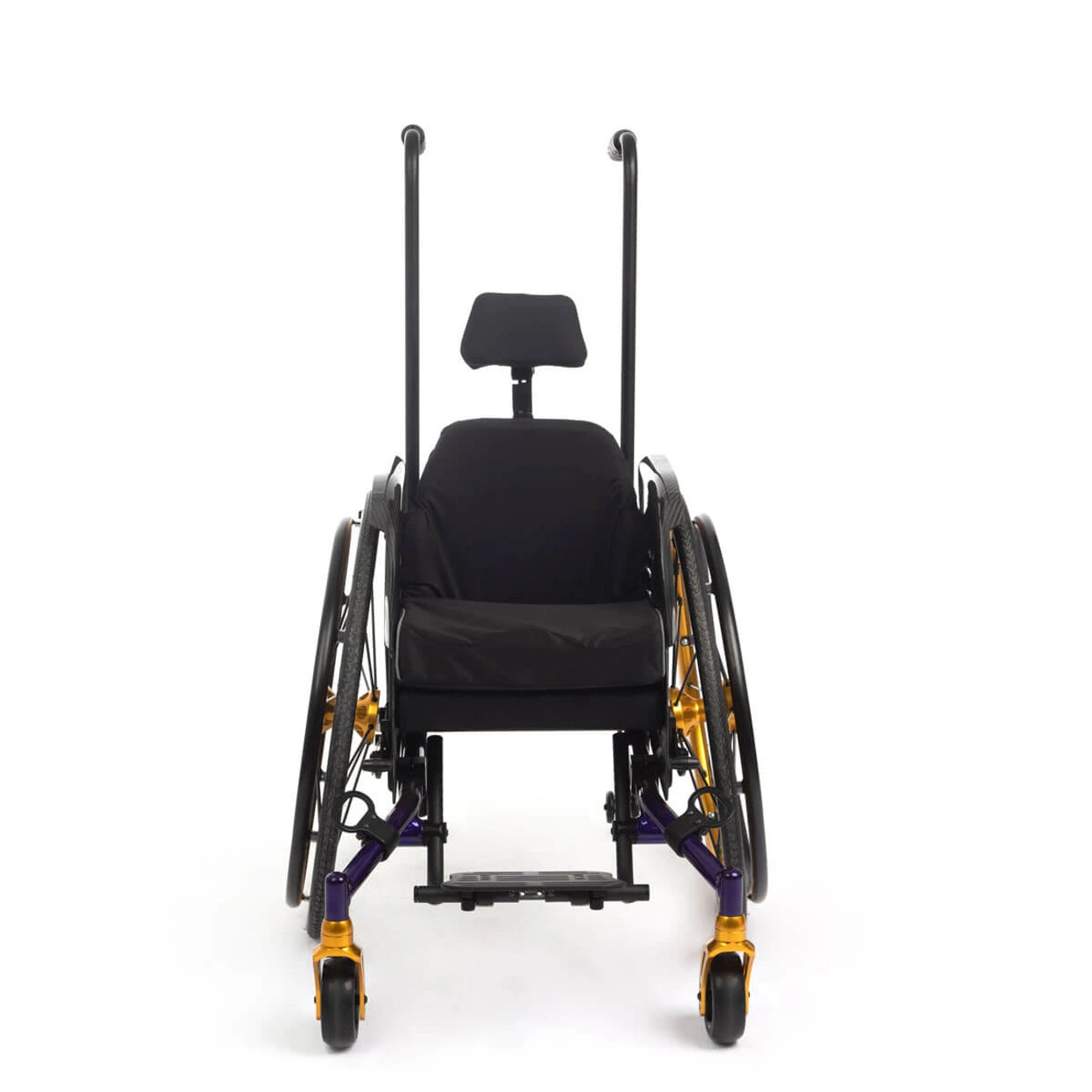 Mounted in the upper position, the wheel lock lever is easy to reach. Mounted in the lower position, the levers are out of the way for fast pushes.